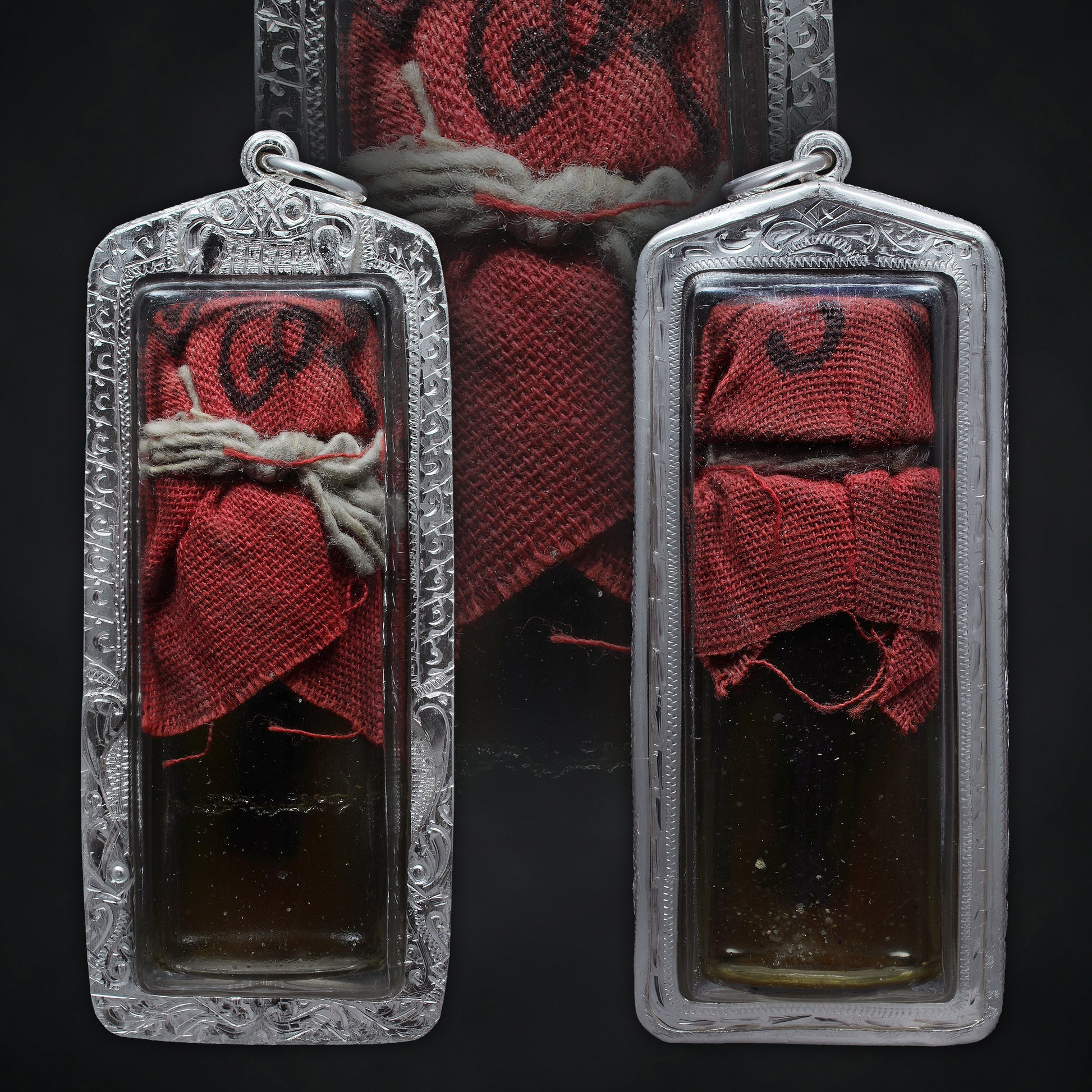 Only Ac Bed’s closest students received this particular NMP. It was never a public release. This bottle was kept by one of his long-time luksits in a northern-style custom silver casing—typical of collectors who prefer to preserve field-consecrated materials in the style of Lanna altar work.