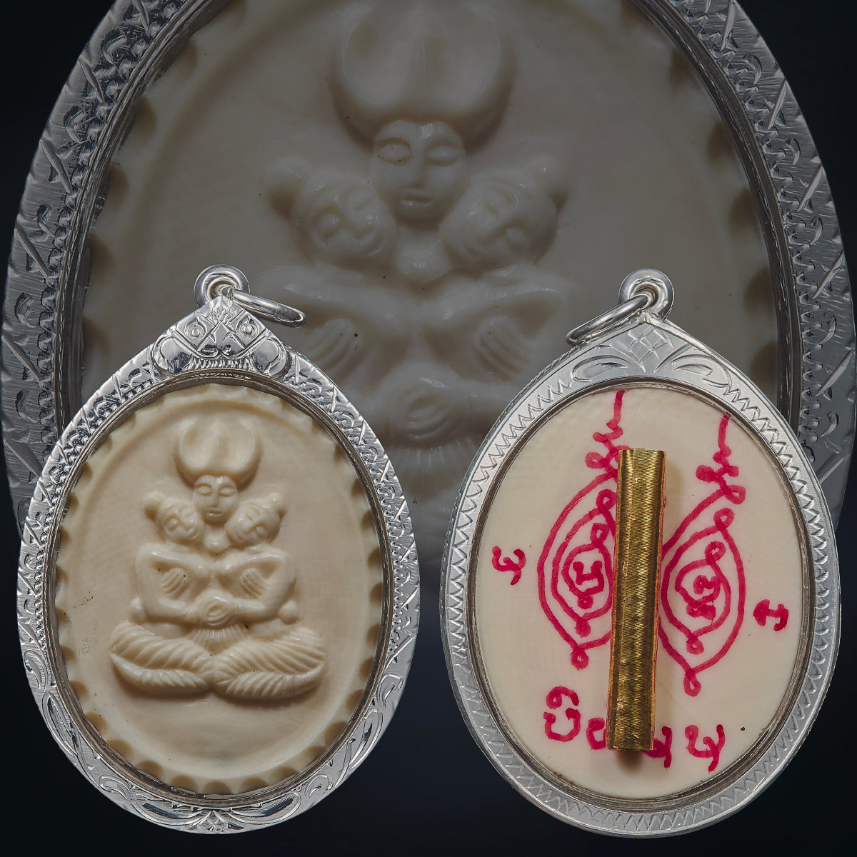 This piece, enhanced by the gold Takrut Maha Saneh, stands among the highest expressions of Arjan Satien’s wiccha—a living charm that bridges divine charisma and worldly success, revered by collectors and respected by those who feel its power firsthand.