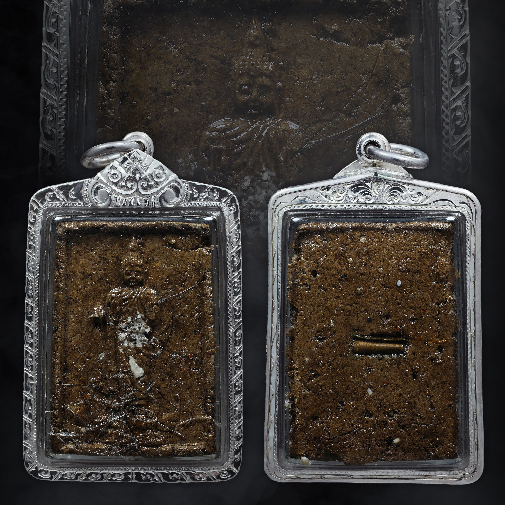This Kam Duang pim by Arjan Pirat carries the same foundation of forest-lineage relics as his Somdej Prah Phuttha Metta, but the intention behind the mould is different. “Kam Duang” refers to adjusting, strengthening, and lifting one’s duang (fortune/destiny), a purpose traditionally associated with high-level forest monks who understood both karmic flow and meditative blessing.