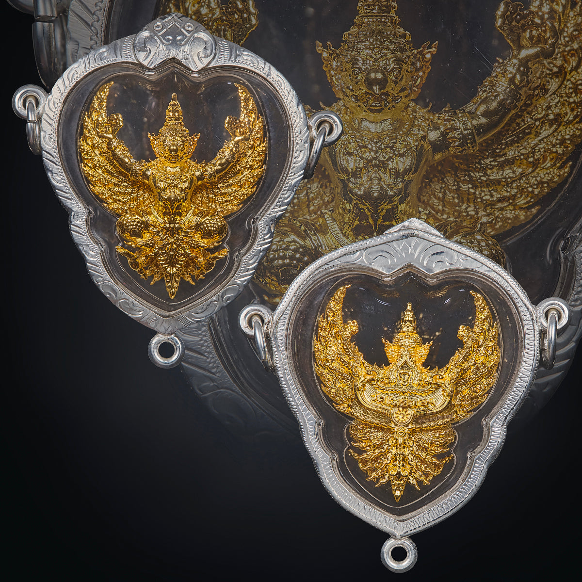 Phra Krut, the Garuda, is the king of birds in Buddhist and Hindu tradition, and the state emblem of Thailand. It represents supreme power, protection, and prosperity. In amulet form, Garuda gives the wearer authority, courage, and recognition. It is highly valued by businesspeople, government officials, and those needing both respect and prosperity.