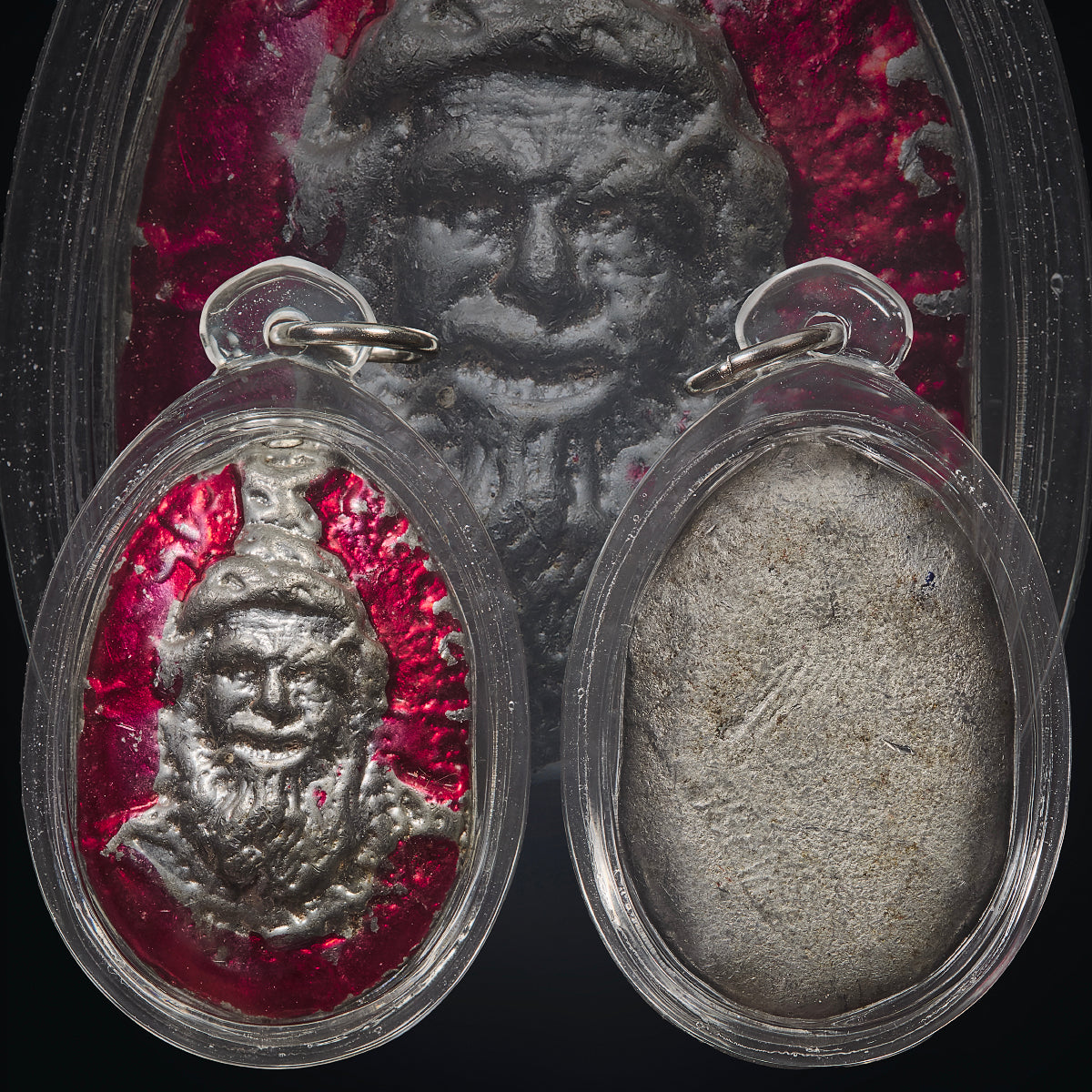 Amulets depicting Lersi Thom are rare, as his role is less about temple ritual and more about deep forest practice and transmission of esoteric wiccha. Masters who cast his likeness in sacred materials did so with the purpose of carrying forward his presence as a spiritual guide, particularly for practitioners seeking clarity in direction, resilience in hardship, and access to hidden knowledge.