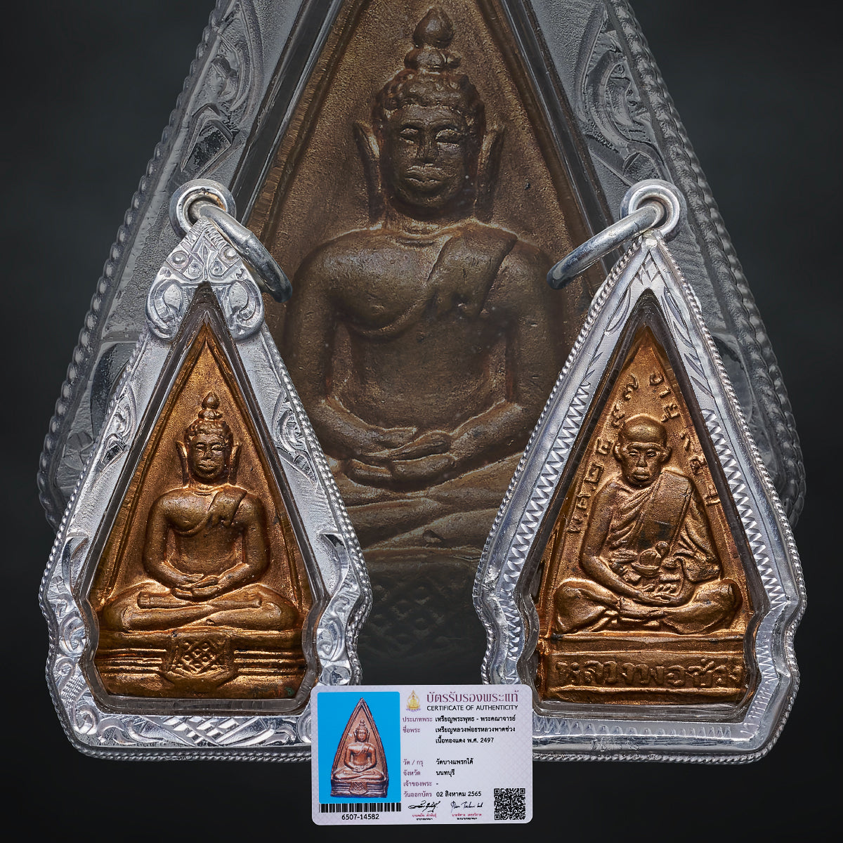 Year: B.E. 2497 | Material: Copper | Size: 2cm | Silver Frame | Samakom Certificate