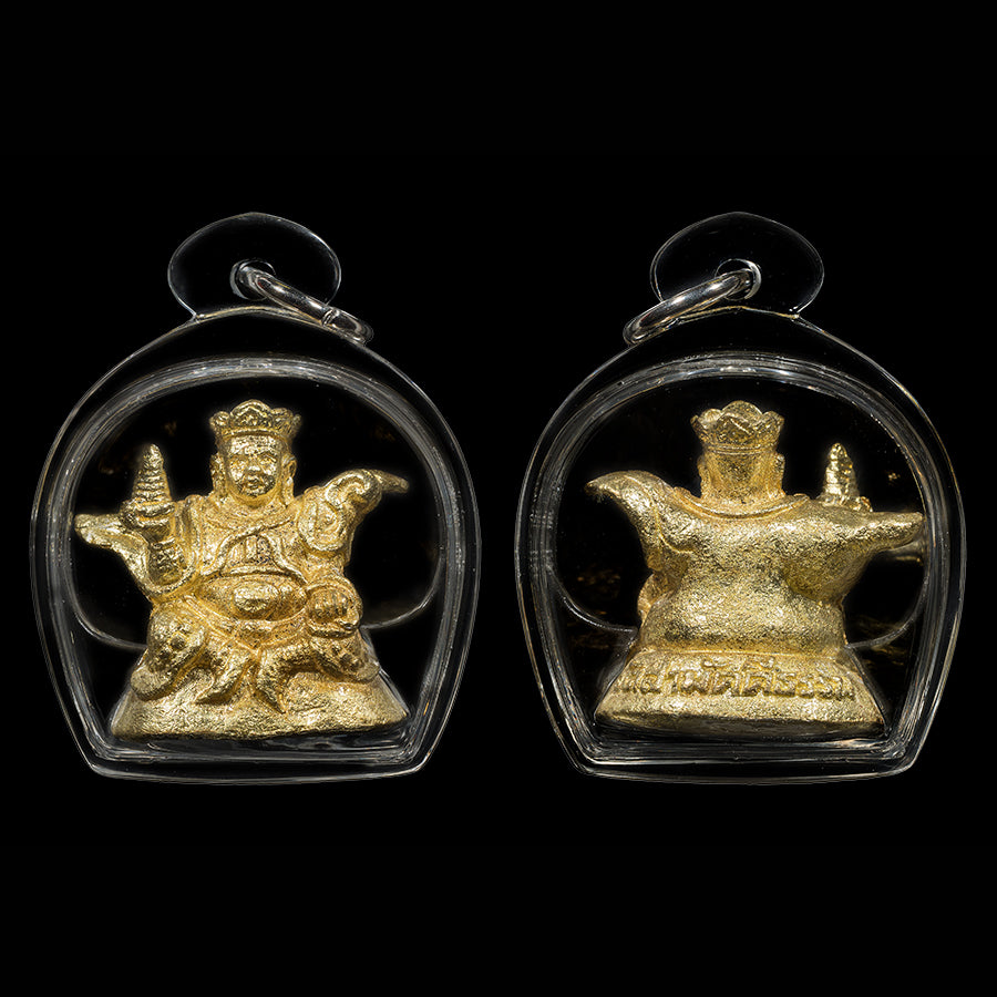 This powerful amulet features Li Jing, the Pagoda-Bearing Heavenly King (托塔李天王), crafted by LP Lum of Wat Samakeetham using solid brass material — a traditional metal used for strength, authority, and long-lasting blessings.