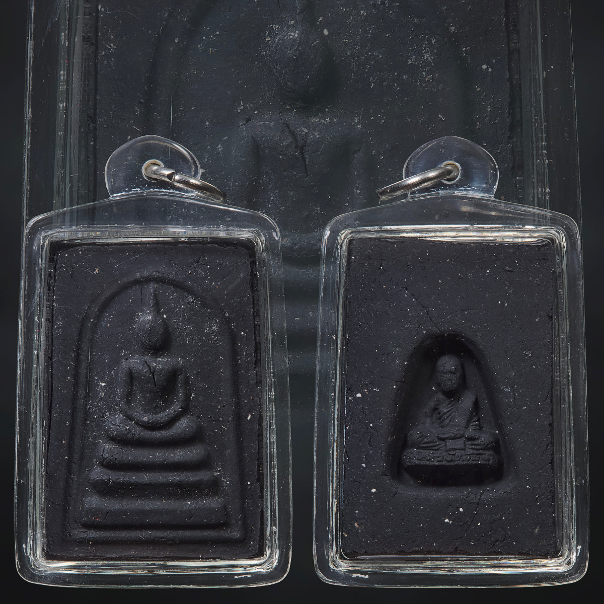 This striking black Somdej amulet is made from a rare and spiritually balanced combination of two highly respected materials:
