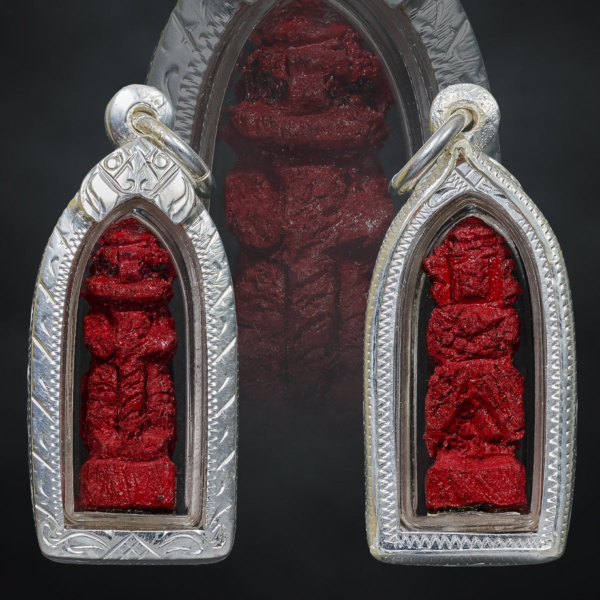 This specific Tao Wessuwan is cast in auspicious red, a color associated with energetic rise, vitality, and expansion. More than symbolic, the red version was chanted specifically with wealth-oriented katha, as confirmed by Luang Phor Waypon during consecration.