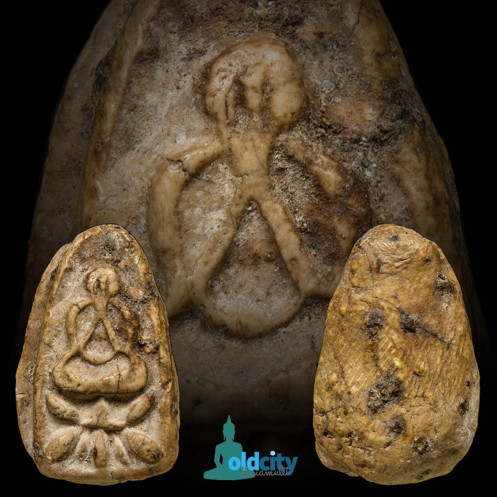 Wat Ampawa is an old Ayutthaya-period temple located on Issaraphap Road, Ban Chang Lo, Bangkok. In B.E. 2484 (1941), during the wartime era, the temple’s ancient chedi behind the ubosot (ordination hall) was opened, revealing a large quantity of powder-based Phra Pidta and other amulets. These had been sealed since the restoration of the temple around B.E. 2440 (1897).