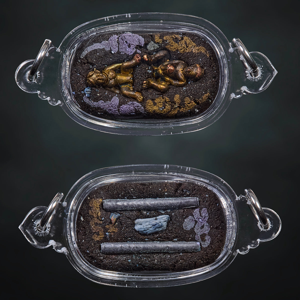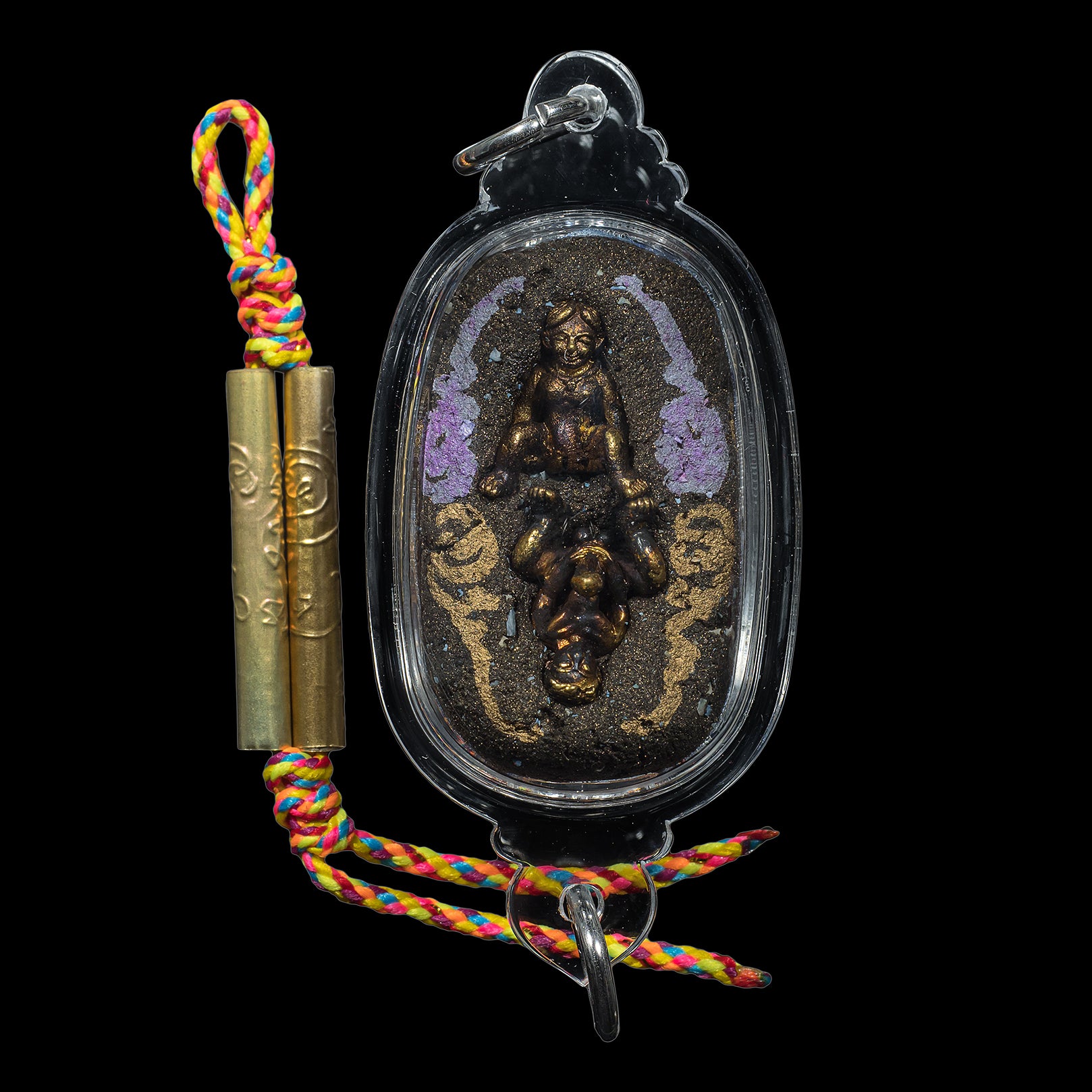 Ac Tum was a non-commercial Arjan who kept most of the pieces and only gave a small number to his close students in Laos. During visits to the village, his students explained that he was their main spiritual advisor, offering guidance on matters such as marriage, attraction, and community rituals. They recalled that wearers often found a partner within two to three weeks of keeping his charms.