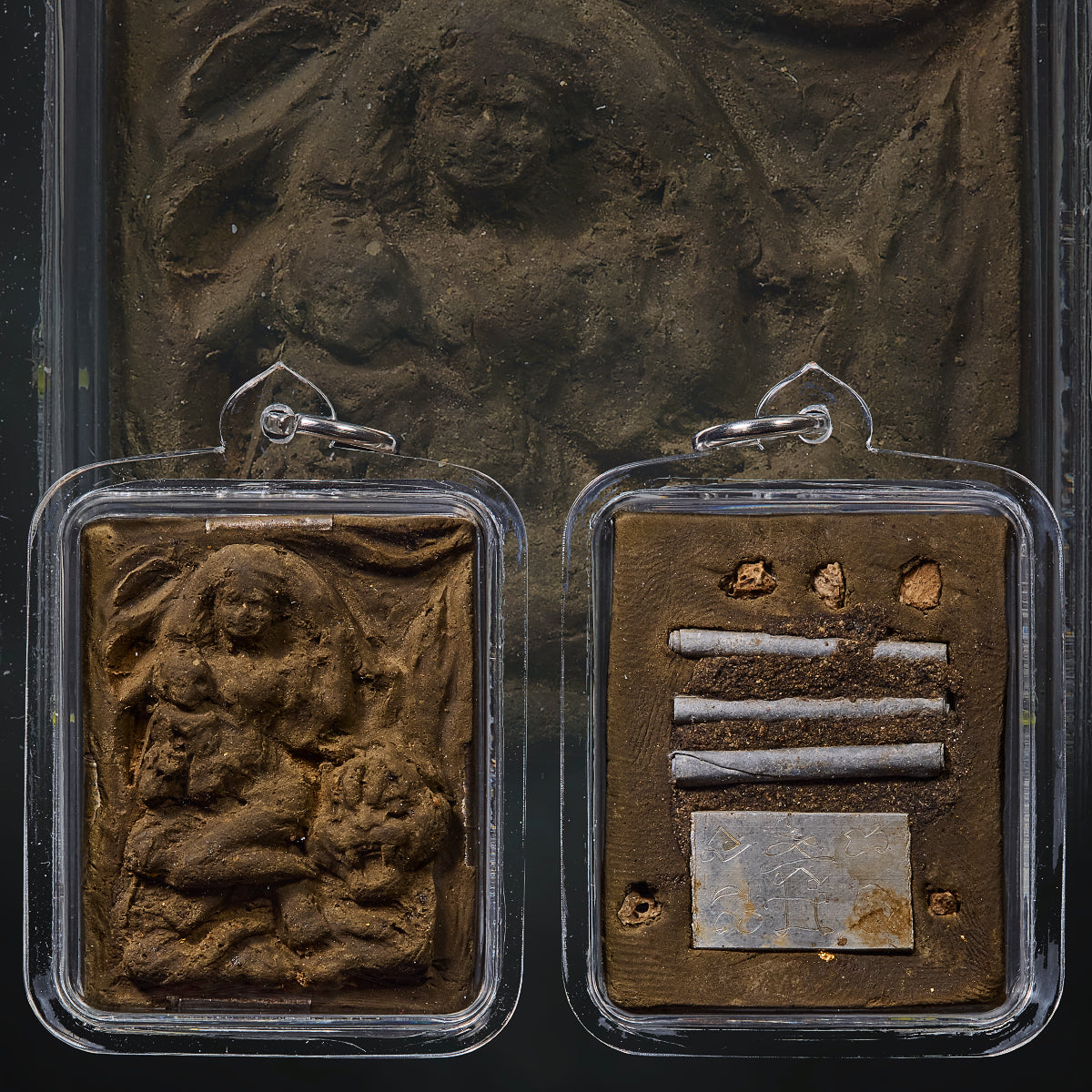 The spiritual power of this amulet originates from the lingering energy of an old couple whose love remained unbroken even after death. Their spirits were bound to the cemetery due to their deep emotional connection. Recognizing the purity and strength of their devotion, Por Sala Tan performed sacred rites to release them and enshrine their energy into these amulets.