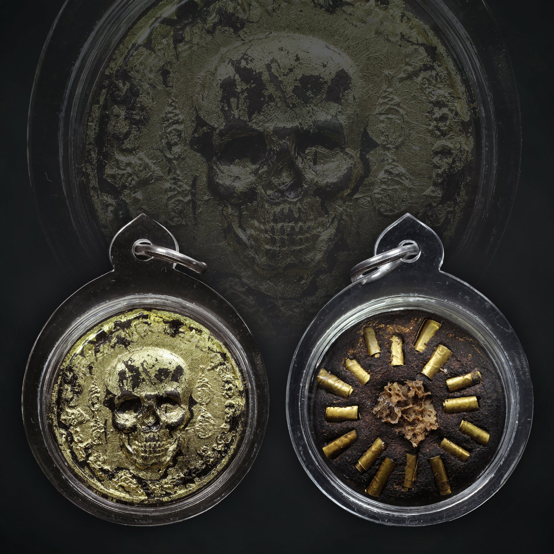 The reverse of each piece is set with multiple takruts, each individually inscribed and hand-empowered by Por Sala Tan. At the center lies a Mae Prai paneang chip, anchoring the spiritual essence. This careful structure ensured that each amulet carried the distinctive Prai Kasip influence, harmonized through the takrut arrangement.