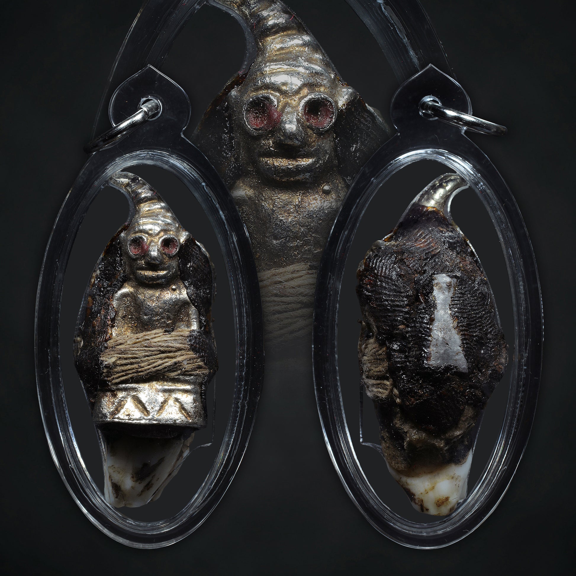 This image originates from a vengeful jinn that had been attached to its former owner until her death. After being left unanchored, it was bound and re-purposed by Por Sala Tan, ensuring that the spirit could continue to function in service while no longer causing harm.