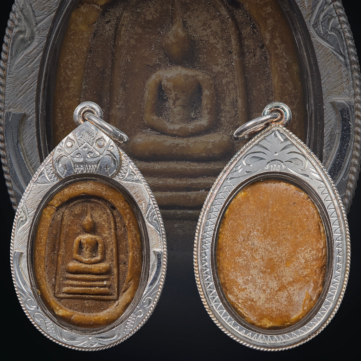 The piece eventually came into my possession. I took it to Bangkok and had it properly framed in a silver casing, giving it both protection and dignity. This is the only piece available, a Somdej with a truly personal lineage: pressed at Wat Rakang, carried and blessed across Thailand by a forest monk disciple of Por Sala Tan, and kept in the family line until now.
