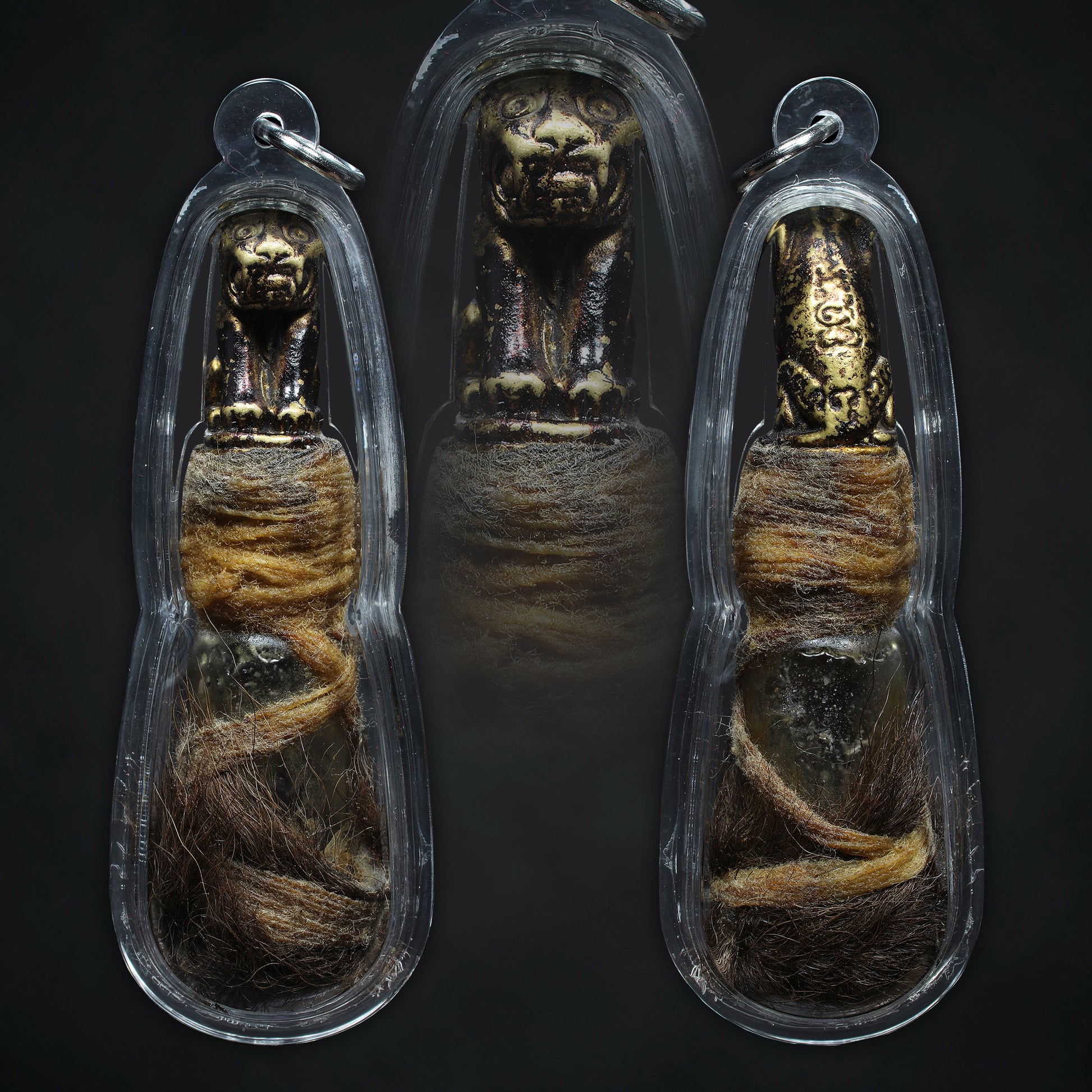 This Suer Yant Tue Tort represents a blend of Central Thai wiccha and Northern Suer yan wiccha. Arjan Bed was responsible for bringing this batch of Suer Tua Tort into being, drawing directly from the Central Thai lineage practiced by well-known masters such as Luang Phor Pern of Wat Bang Phra and Luang Phor Wong of Wat Pariwas. Arjan Bed traveled to the central region to have these roop lor cast and blessed by monks of that lineage, after which he brought a small batch back north for his own students.