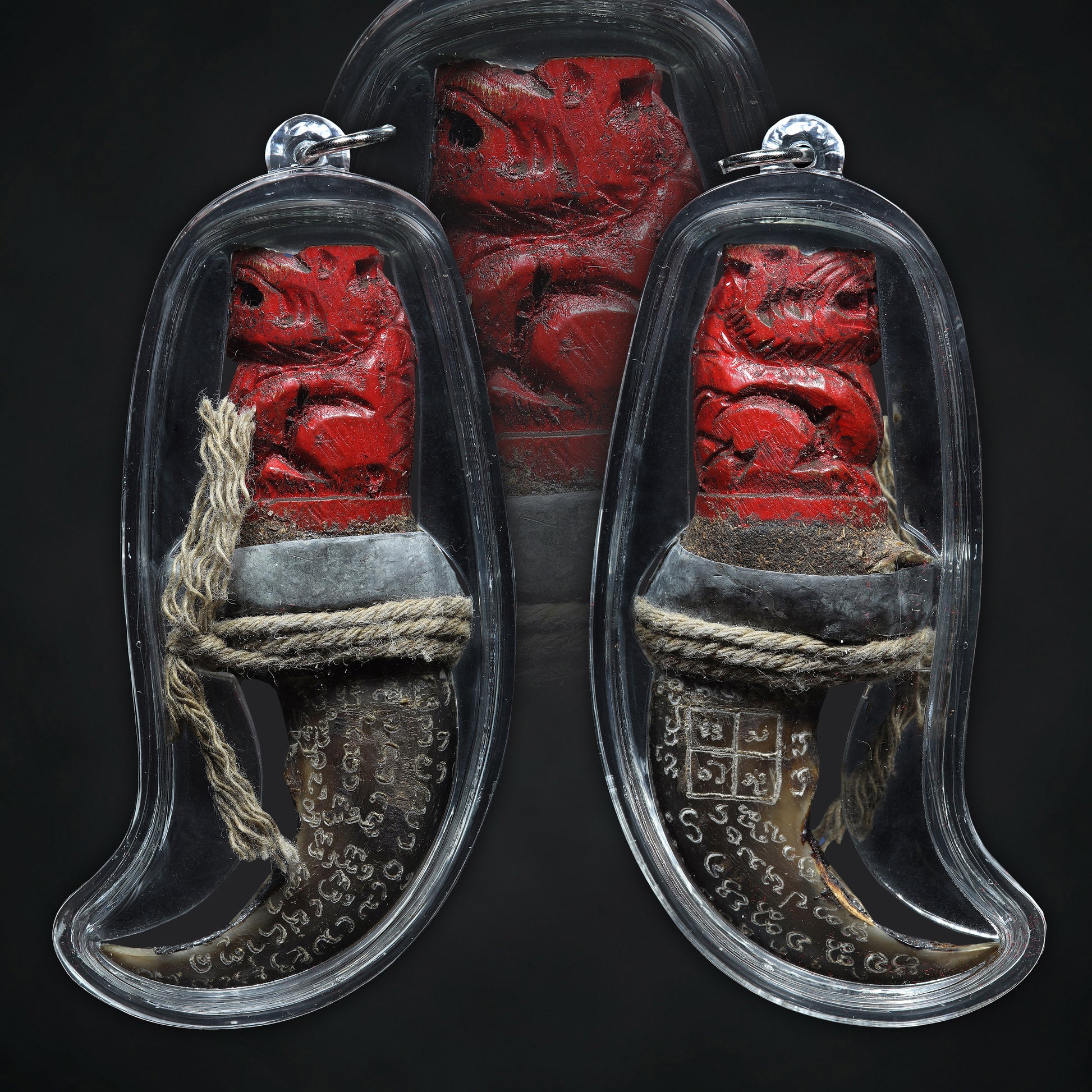 This piece represents one of the most potent forms of tiger magic in the Lanna and Thai occult traditions. The red tiger is a long-standing emblem of courage, protection, and commanding authority, often invoked by warriors, shamans, and leaders for its ability to instill fearlessness and dominance over both physical and spiritual adversaries.