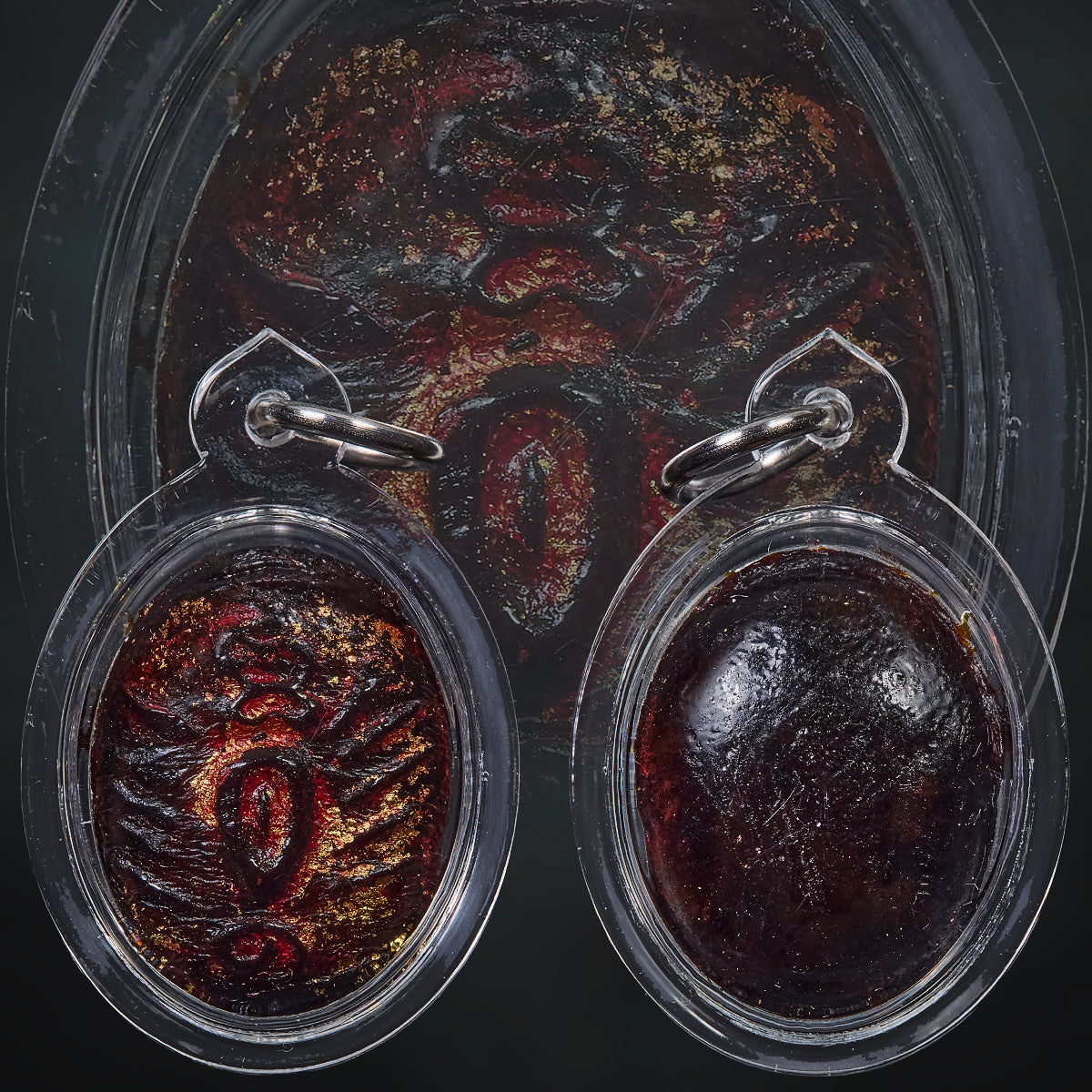 This amulet was created by Por Sala Tan, a master known for his ability to handle volatile prai energies and bind them into stable, functional talismans. Among his luksit, the yoni seed pieces are considered some of the most potent works in the field of seneh. Their small size conceals the intensity of the ritual work and the spirit essence bound within.