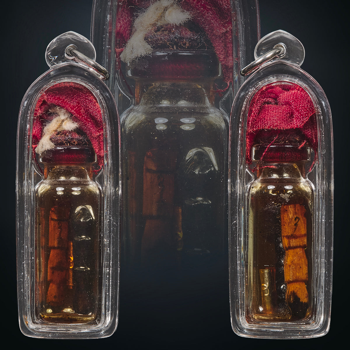 As one of the classic collaborative works between Por Sala Tan and Arjan Bed, this bottle represents both historical significance and rarity in present times. The survival of its oil content elevates it into the upper tier of collectible spirit oils, ensuring that its blessings remain active and vivid for the next custodian.