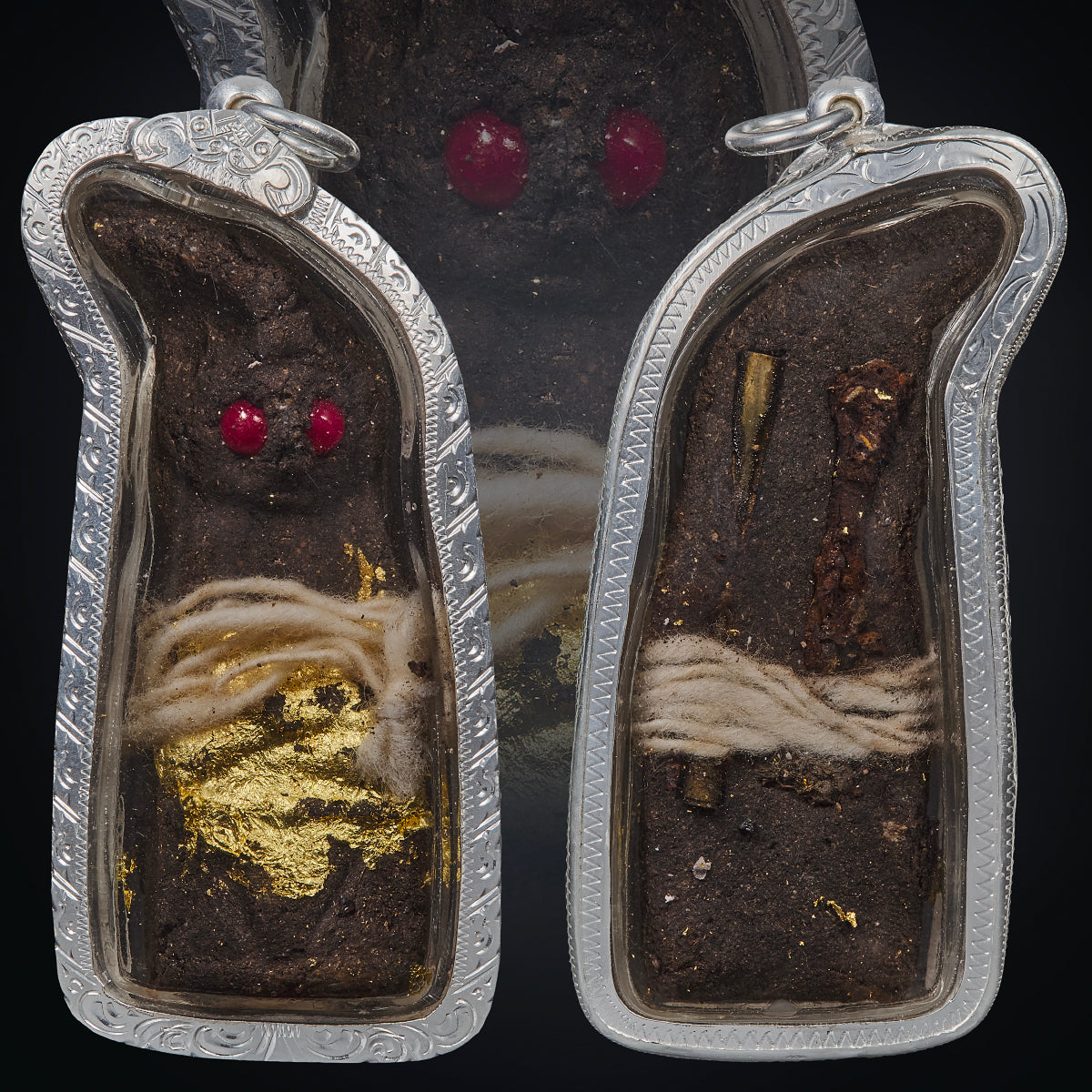 The final mixture was hand-molded by Por Sala Tan himself into the Ngan form, wrapped with consecrated cord, and marked with gold leaf and other ritual inclusions.