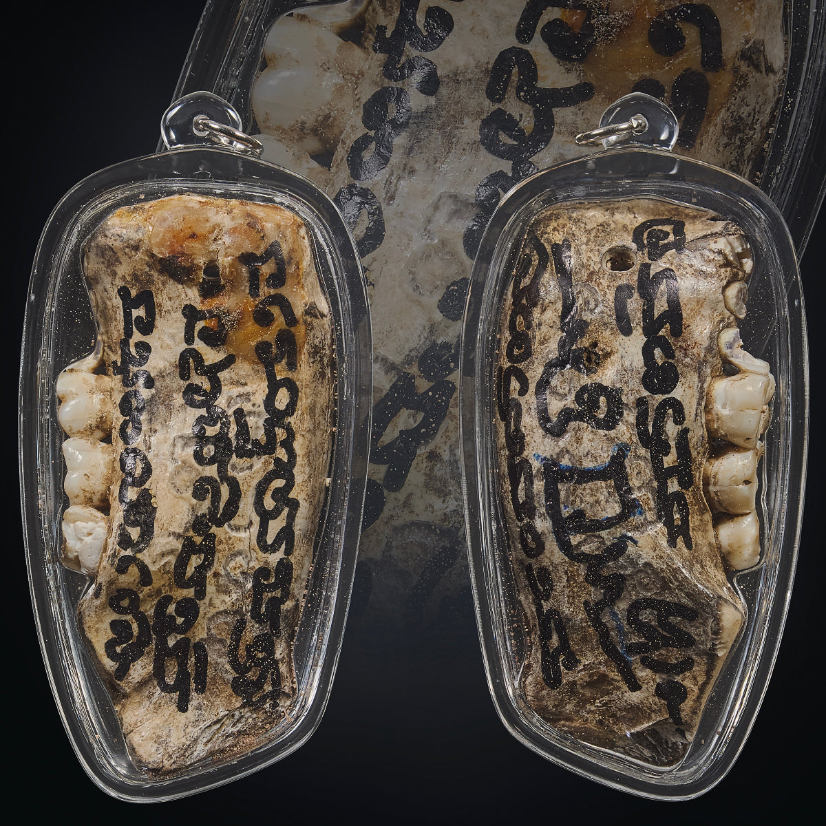This relic was uncovered within the remnants of an old temple structure, believed to have been sealed away for decades without clear historical records. Upon retrieval, it emanated an unusually bright energetic aura, prompting Por Sala Tan to perform a ceremony of awakening and harmonization. Recognizing the entity’s jinn origin and whispering nature, Por Sala Tan inscribed yantras directly upon the bone, establishing the first spiritual contract between master and spirit.