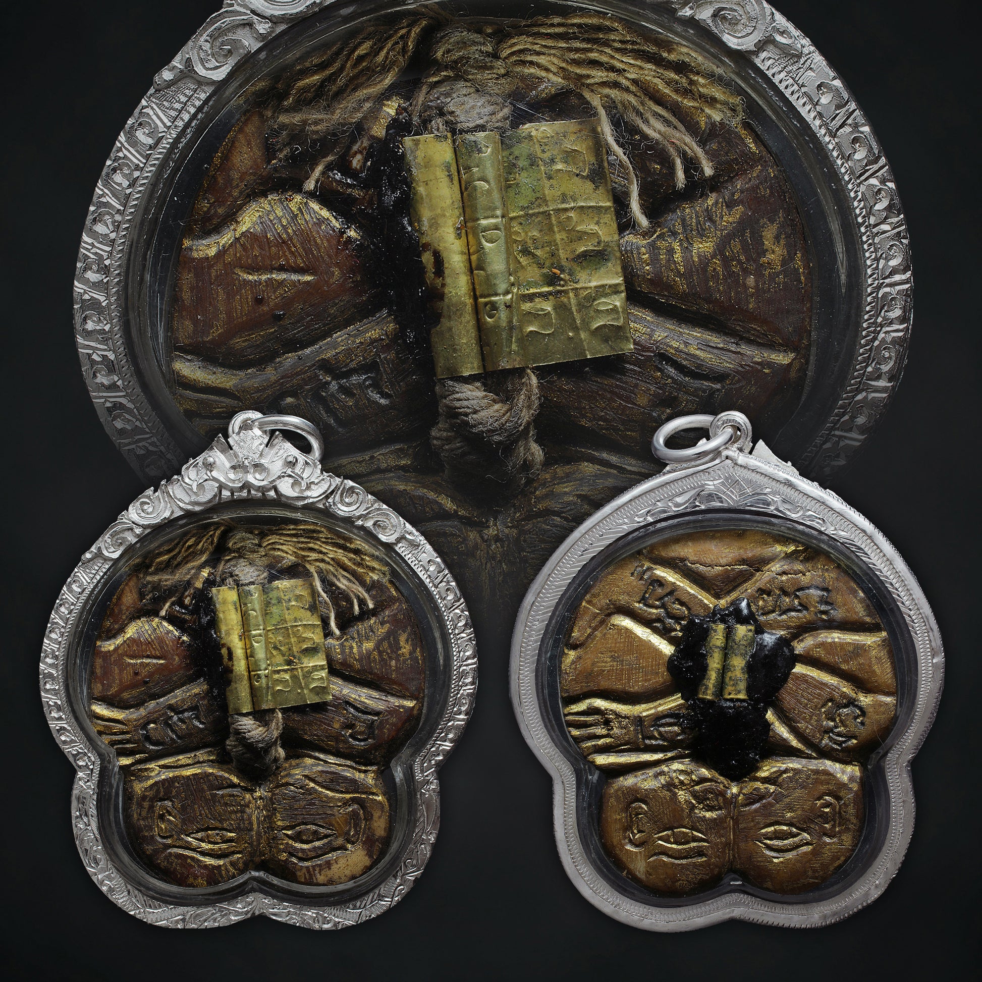 Recognizing the sacred alignment between the relic’s natural potency and the twin spirits’ energy, Por Sala Tan performed an extended liberation ritual to anchor them into this hand-carved piece. The form was shaped deliberately in the upside-down Yintong posture, symbolizing reversal of conflict, restoration of unity, and transformation of emotional imbalance into lasting connection.