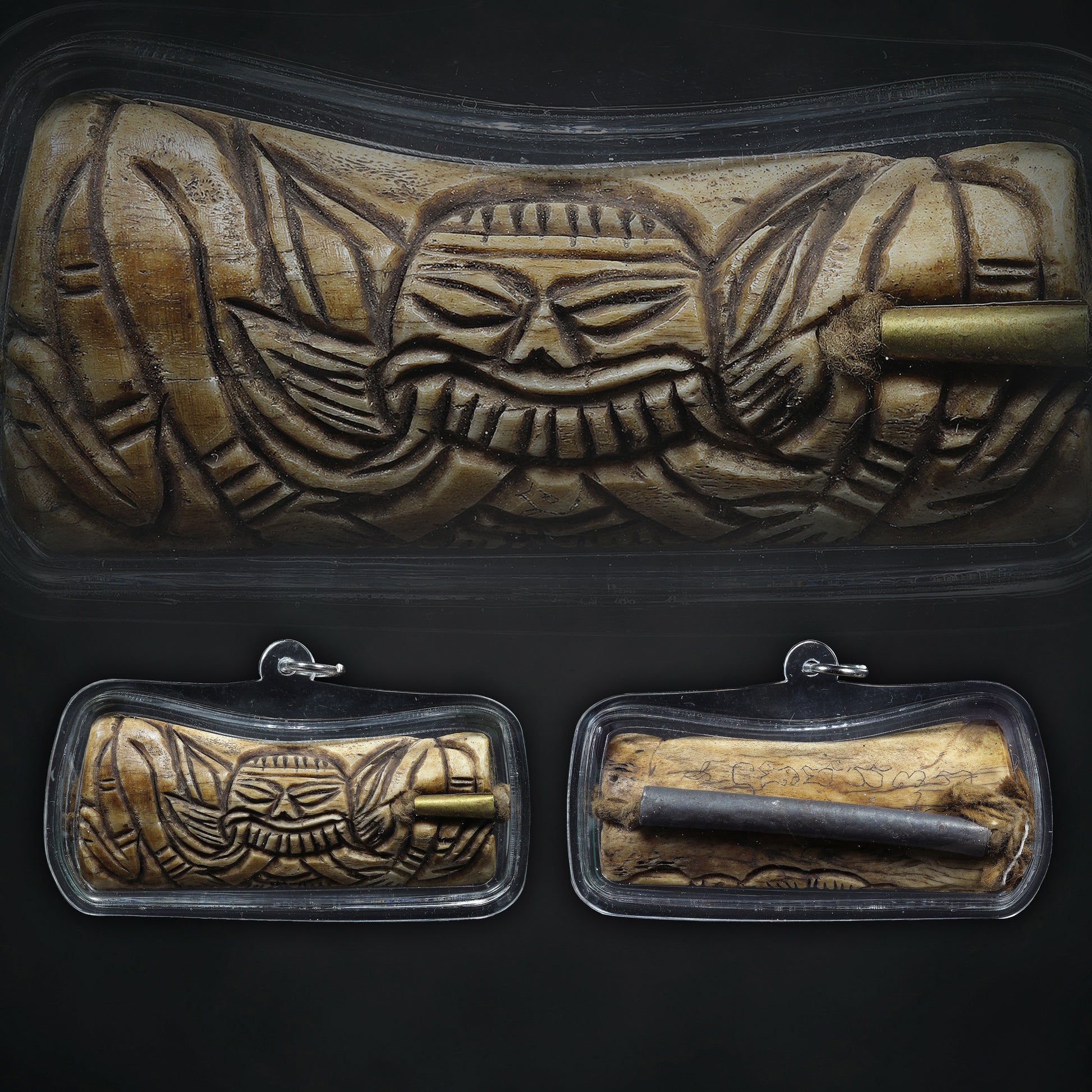 Single Lead Takrut (Back): Added for harmonisation, grounding, and energetic balance, ensuring the protective force acts cleanly without rebounding on the wearer.