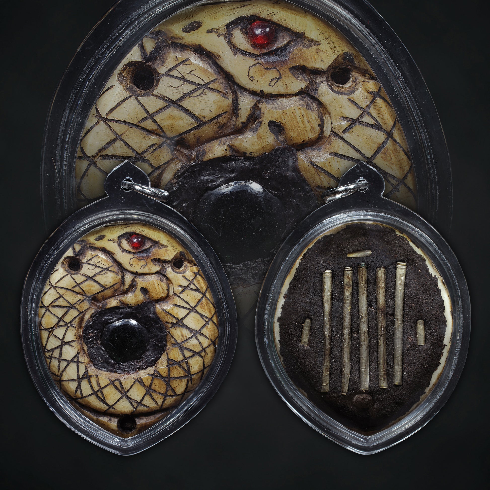 On the back, Por Sala Tan installed tarkruts arranged to stabilise the water energy and harmonise the relics. In his lineage, Naga items require precise balancing; water spirits can be powerful but must be guided to support the wearer’s life rather than overwhelm it.