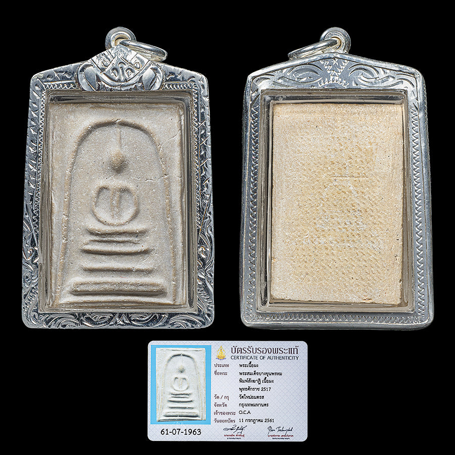 This batch of Somdej Bung Khun Prom was created and mass chanted in B.E. 2517 in Wat Bung Khun Prom (Wat Mai Amataros) by 37 well known monks at that period. Some of monks who participated the grand chanting ceremony were: