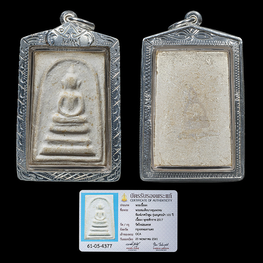 This batch of Somdej Bung Khun Prom was created and mass chanted in B.E. 2517 in Wat Bung Khun Prom (Wat Mai Amataros) by 37 well known monks at that period. Some of monks who participated the grand chanting ceremony were: